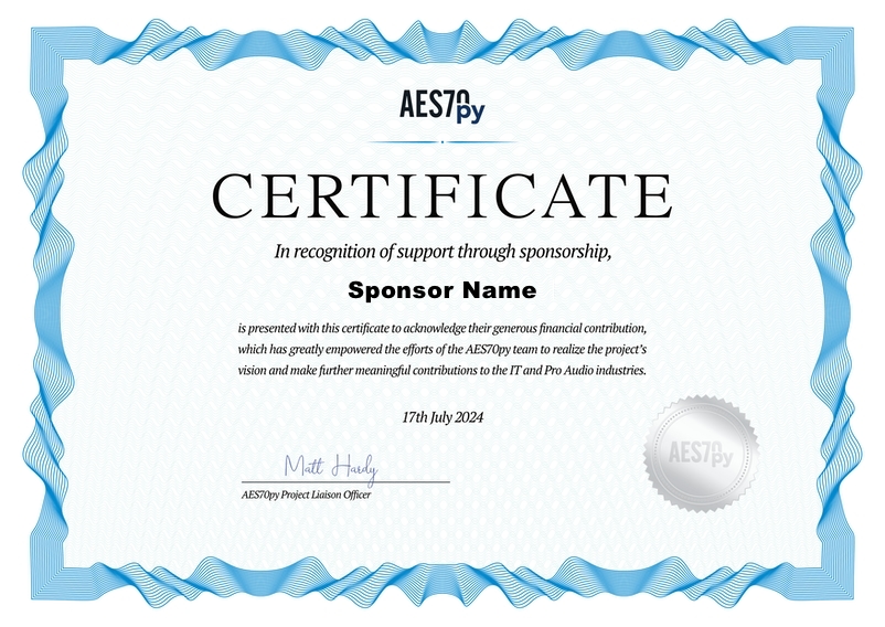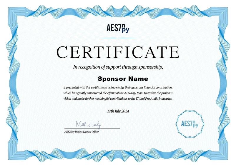 Sponsorship in no way confers ownership or other rights over the software or resulting libraries released by the AES70py project technical team.